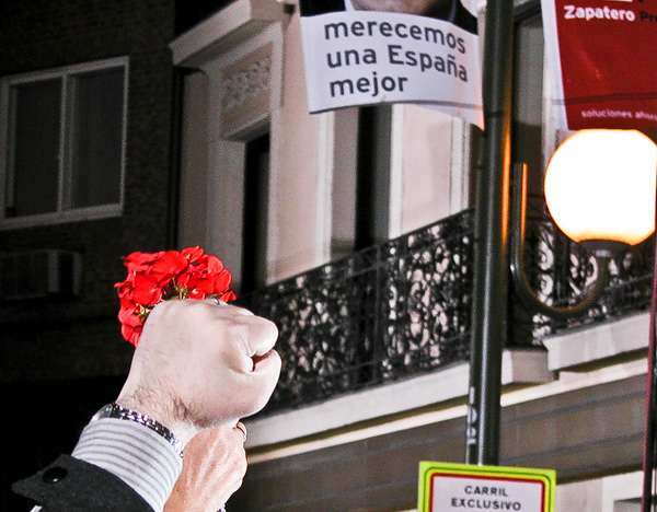 En la sede del PSOE la noche del primer triunfo de Zapatero como candidato a la presidencia del país. Foto de León de la Hoz