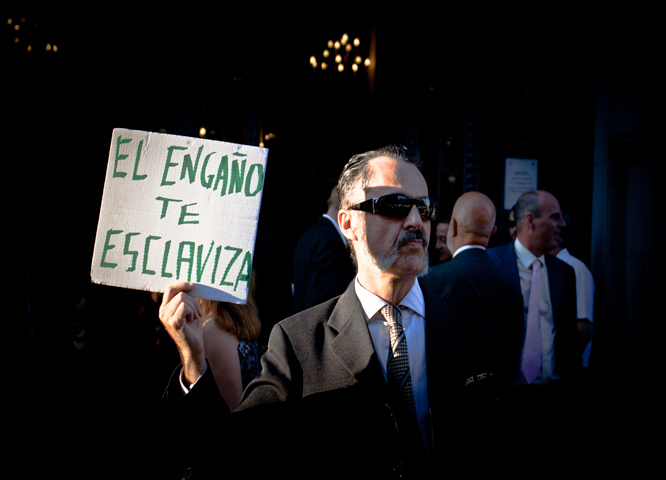 La presidenta de Madrid, Esperanza Aguirre, discípula aventajada de Aznar, junto a sus guardianes de partido utilizan las mismas mentiras y desplantes ideológicos y políticos para desacreditar cualquier idea alternativa democrática como el 15-M o los profesores opuestos al favoritismo a la escuela privada en perjuicio de la pública. Eso se aprende. Cuando Aguirre fue ministra de cultura parecía idiota pero entonces no se la veía tan déspota. Según ellos la crítica y el descontento también parten de la “extrema izquierda marginal antisistema”. Los demás son corderos de Dios y por extensión del PP, eso suponen. Lamentablemente, eso sí, sus correligionarios son incondicionales y tienen un solo oído para escuchar la doctrina y las mentiras de derecha como sucede del mismo modo con la izquierda, no creáis que no. También la dictadura castrista contra la cual Aznar en una época fue el abanderado en Europa estigmatiza a sus opositores demonizándolos y sus creyentes tienen un solo oído. Los extremos, ya se sabe.