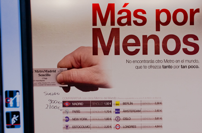 No es el fin del mundo, amigos. Y mejor así, porque hay mucha gente que no ha podido ganarse el cielo e iría recto al infierno. Yo conozco alguno. No lo es aunque nos caiga de vez en vez la chatarra del espacio, se deshiele el casquete polar, muera algún poeta o la presidenta de Madrid pague con nuestros bolsillos la publicidad subliminal de los políticos en la crisis. MÁS POR MENOS. Aunque sólo parezca publicidad institucional engañosa sobre el precio del metro, la presidenta se está convirtiendo en la ideóloga de su partido. El mundo no se va a acabar, pero algo se acaba. Los políticos ya anuncian que este año habrá que hacer más con menos. Todos contra el déficit. Más impuestos, restricciones, incertidumbre, pobreza, desarticulación social, delincuencia, tristeza y dictadura de partidos. Menos crecimiento, dinero, inversiones, gasto, cobertura social, salario real, seguridad social y democracia. Más de lo mismo con o por menos.