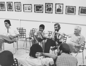 De derecha a izquierda, Armando Hart, Carlos Martí, León de la Hoz y Abel Prieto. En la sala Villena de la UNEAC, durante una de las reuniones que discretamente se realizaron con los jóvenes a solicitud de Hart, para conocer de primera mano el motivo por el cual se habían convertido en blanco de la invectiva de algunos sectores del poder político.