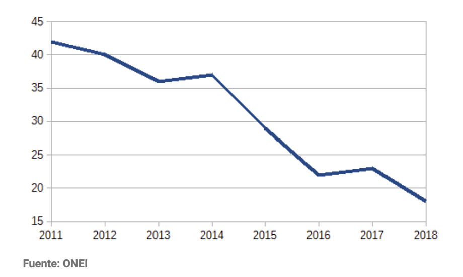La economía cubana está en bancarrota. Necesita importar bienes y servicios del exterior que no puede pagar, porque su economía controlada por el estado, es incapaz de satisfacer las necesidades de la demanda interna, por ejemplo, la alimentación, pero también el suministro de energía, los bienes intermedios o los bienes de capital. Las autoridades se han dado cuenta que la sustitución de importaciones es inviable a corto plazo, y además, anacrónica. La tasa de cobertura del comercio de bienes (la relación en porcentaje entre las exportaciones y las importaciones) se situó en 23 en 2017 y según estimaciones por debajo del 20, en 2018, siendo de las más bajas del mundo, y por debajo del 42 alcanzado en 2011. En el Cuadro 1 se presentan los datos disponibles y se observa cómo la tasa de cobertura va en caída libre.