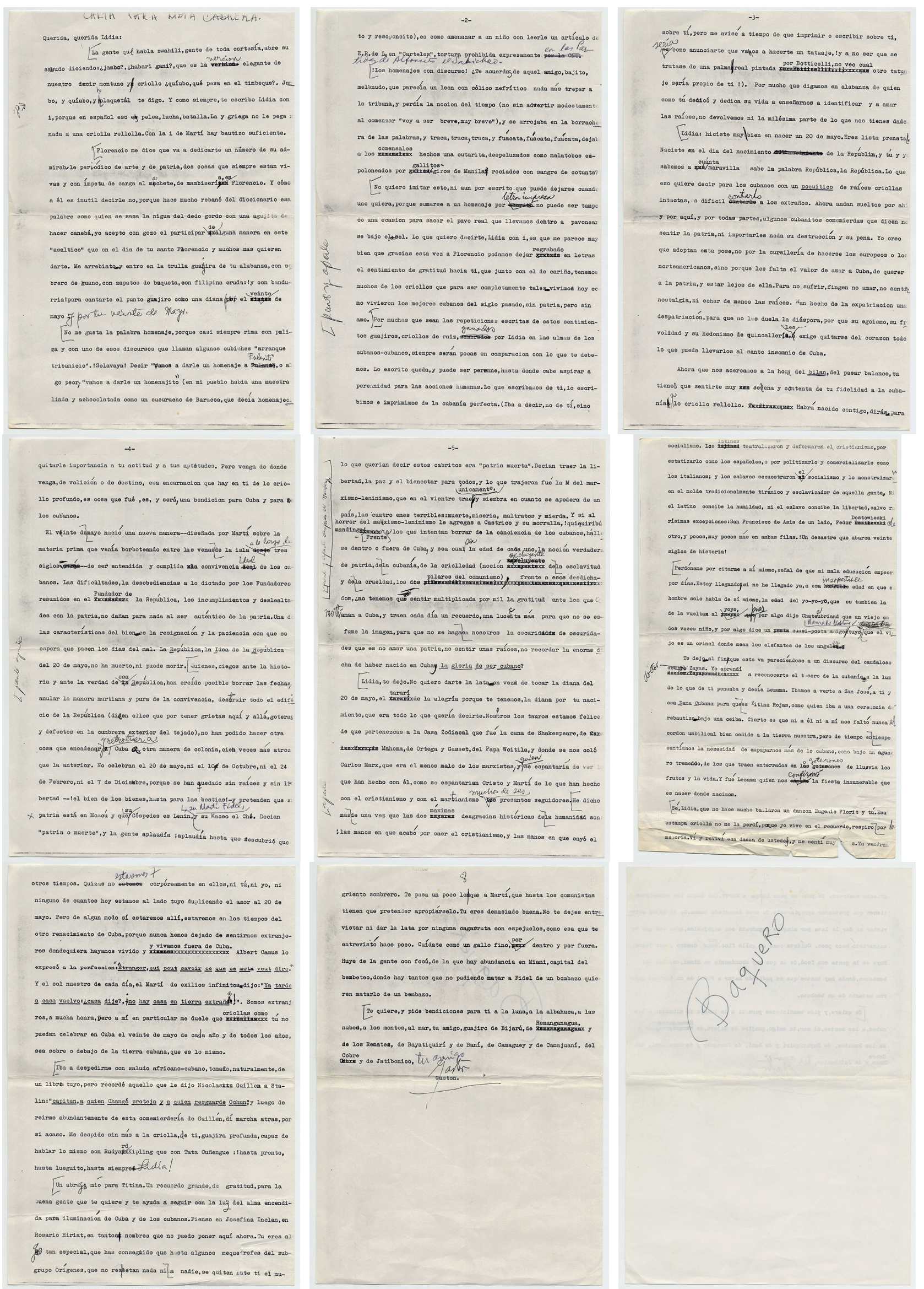 Publicado 7 septiembre, 2020 en 1678 × 2339 en Carta de Gastón Baquero para festejar a Lydia Cabrera